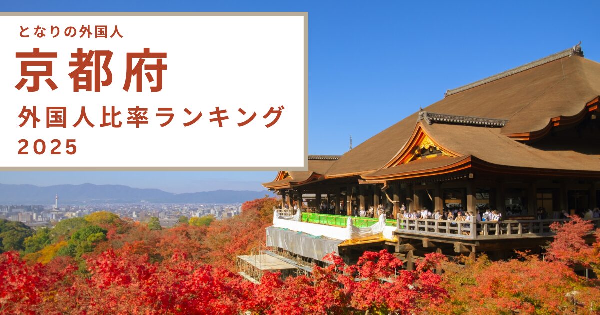2025年6月末時点で、京都府に住む在留外国人は88,337人にのぼります。住民基本台帳人口(2023年)2,488,075人に占める割合は3.6%で、大阪府(4.1%)より低いものの、全国平均を上回っています。