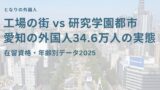 一方で技能実習は多摩5.3%に対し23区1.7%と、多摩地区の方が製造業・農業での就労者が多い実態が見えます。ただし関西の奈良(17.1%)・和歌山(20.9%)と比べると依然として低く、東京全体として就労型より定住・就労専門職型が中心であることに変わりはありません。